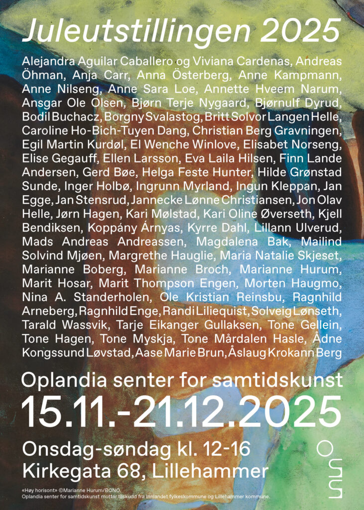 The Christmas exhibition brings together artists from all over Innlandet, a county that is larger than all of Denmark in area. The exhibition is a rare opportunity to get an overview of the Innlandet art scene, and see the full range of expressions and practices. True to tradition, we have also invited artists who have previously exhibited at the art center. Together, this forms a rich and energetic exhibition, which we hope will stimulate both comprehension, good conversations and critical thinking.